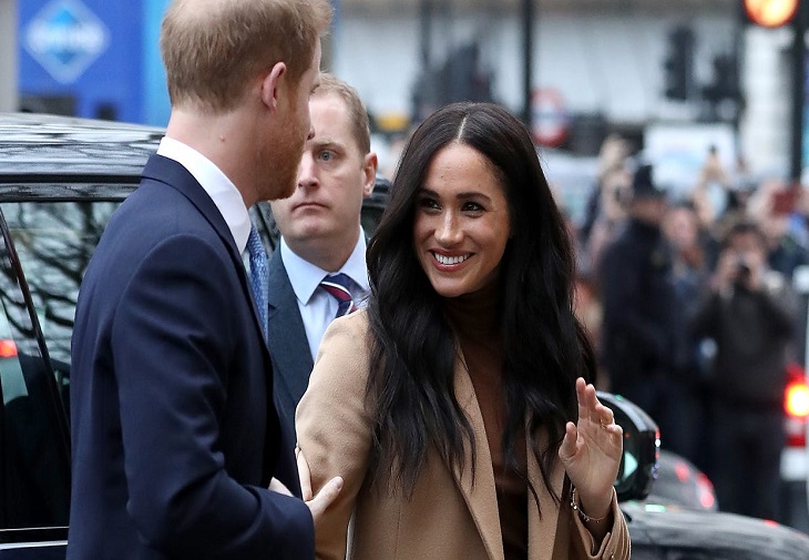 Pe deasupra, Markle a ales o haină de 350 de dolari de culoarea cămilei de la firma locală Reiss britanică și care s-a vândut în totalitate la o oră de la apariția regală. Sub haină a purtat două articole de la Massimo Dutti: primul, un pulovăr pe gât și cel de-al doilea, o fustă midi din satin. Pentru a accesoriza totul, a purtat o brățară Kismet by Milka și pantofi Jimmy Choo din catifea. Chiar și rujul ei - o nuanță subtilă nude - se potrivește schemei de culori din ansamblu.