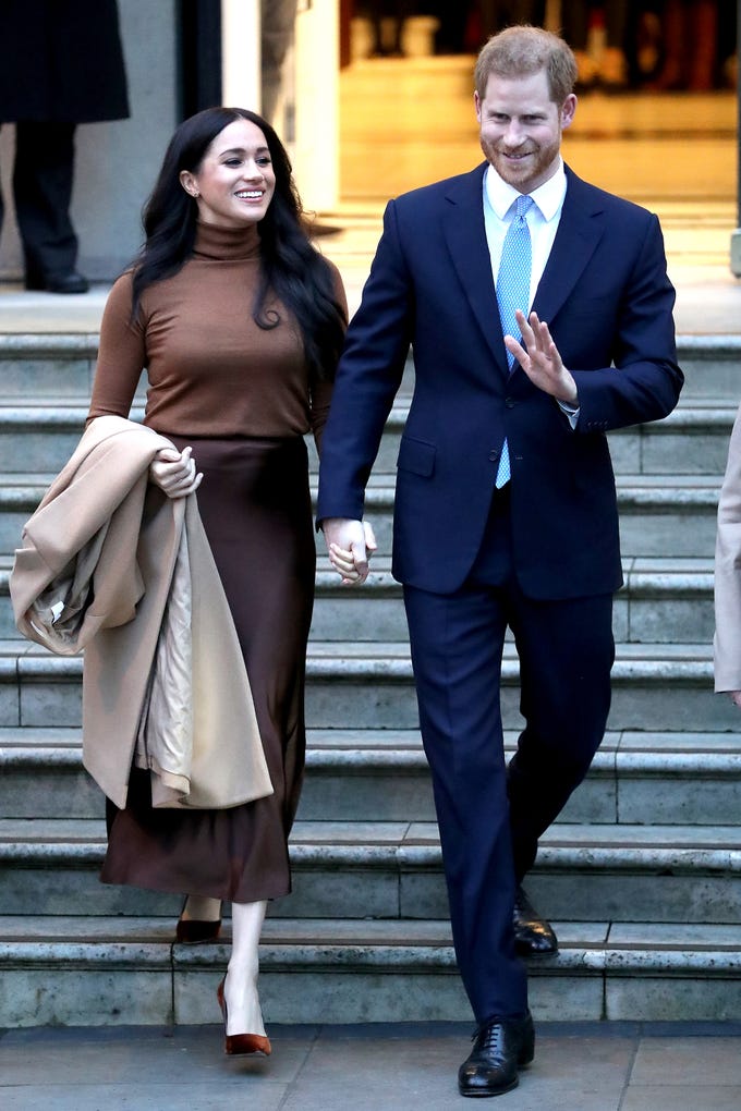 În timpul vizitei sale la Londra, Markle a abordat un aspect maro din cap până în picioare, care ne-a amintit din nou ce înseamnă să porți monocrom în 2020. Spre deosebire de o ținută tradițională monocromă, care combină mai multe piese de aceeași culoare și textură, abordarea Markle este unică prin faptul că amestecă patru nuanțe diferite de maro, de la maro-cămilă la ciocolată cu lapte, folosind o serie de țesături diferite, de la catifea la satin, creând astfel un stil neutru totuși la modă.
