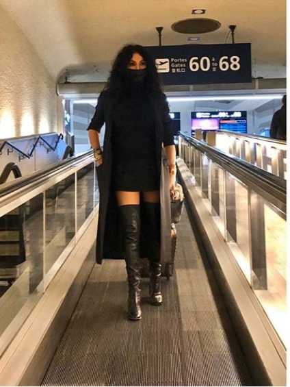 „Poate arăta amuzant sau ciudat, dar asta trebuie să fie o normalitate când privești în jur, în fiecare aeroport. Nu este o glumă, este o simplă precauție. Zâmbim mâine în stil francez”, a scris vedeta de televiziune pe una dintre paginile ei de socilaizare. Mai mult, a apărut chiar şi pe aeroport cu aceeaşi mască folosită pentru a se proteja.
