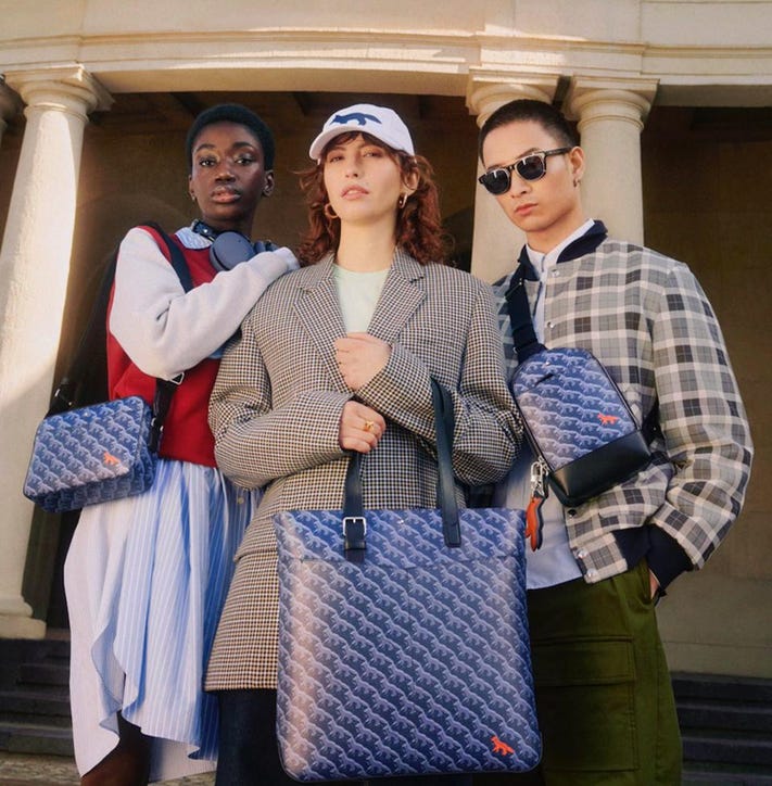 Linia este formată din 12 piese, cum ar fi un rucsac, o geantă pe umăr, o geantă de mână și articole din piele mai mici, precum un portofel, un suport pentru cărți de vizită, un buzunar cu fermoar, centură și portofel, cu logo-ul Kitsune imprimat în pielea Saffiano.