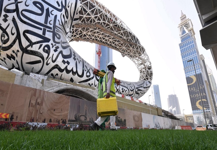 În Dubai, unde blocurile turn se pare că au apărut aproape peste noapte, locuitorii s-au obișnuit să ignore șantierele. Dar există totuși o construcție care a atras atenția tuturor: Muzeul Viitorului din districtul financiar. Cadrul muzeului, care cuprinde 2.400 de bare din oțel care se intersectează în diagonală, a fost finalizat în noiembrie 2018. Muzeul urmează să se deschidă într-un an - un moment important pentru Dubai, deoarece va găzdui Expoziția Mondială începând cu 20 octombrie 2020.