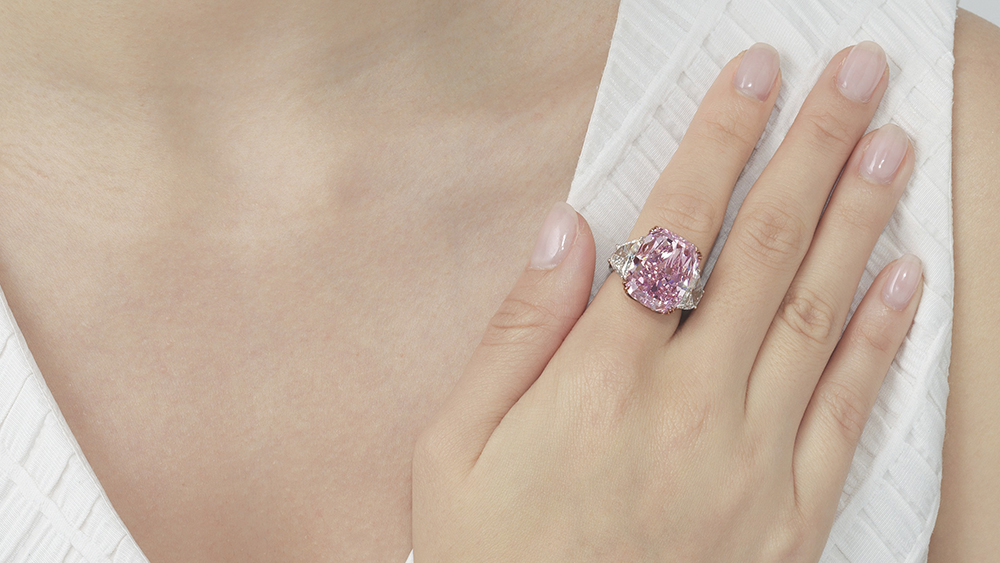 Mai mult, a fost clasificat „fancy vivid”, ceea ce înseamnă că intensitatea culorii pe care o are mai este atinsă doar de 4% dintre toate diamantele roz din lume. Bijuteria prezintă nuanțe remarcabile de roz și violet, care le imită pe cele găsite în flori de cireș. Cu alte cuvinte, nu este doar mare, ci și strălucitor.