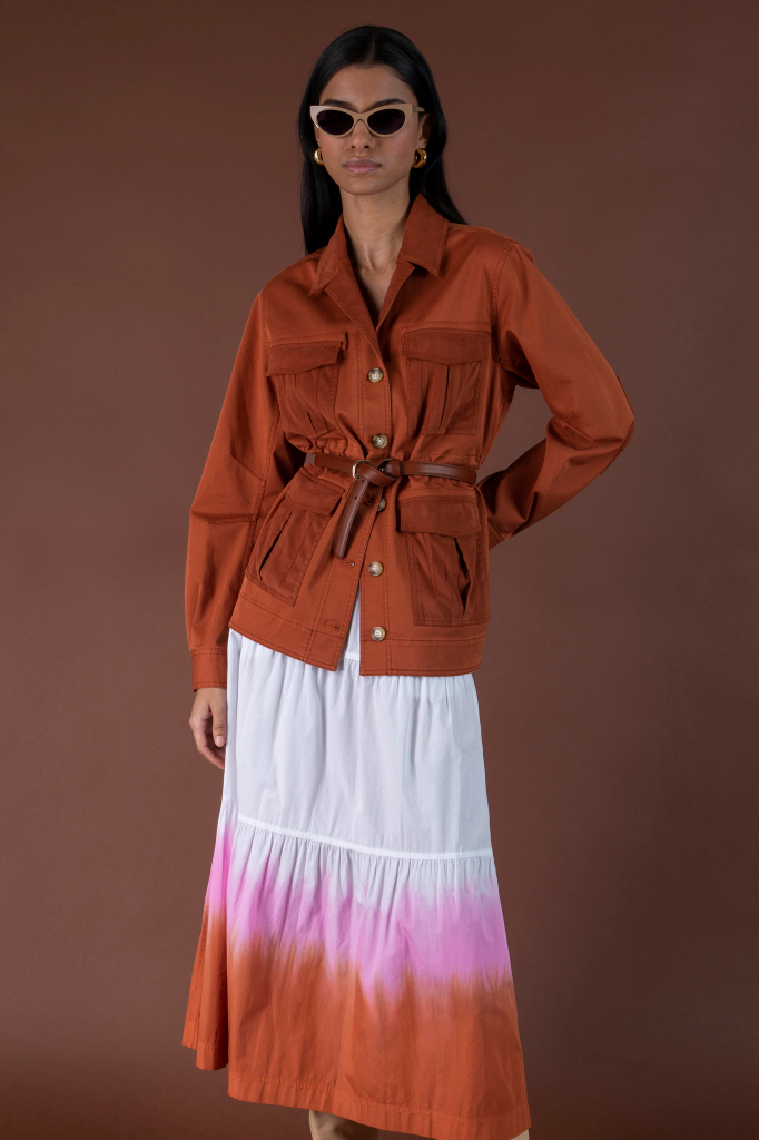 De asemenea, designerii au optat și pentru culorile mai îndrăznețe incluse în predicțiile Pantone din toamna anului 2021. Ulla Johnson a prezentat o rochie inspirată de prerie în nuanță de roșu aprins (Fire Whirl), o rochie tricotată maro (Root Beer) și o haină din piele de căprioară de un vedre vibrant (Leprechaun).