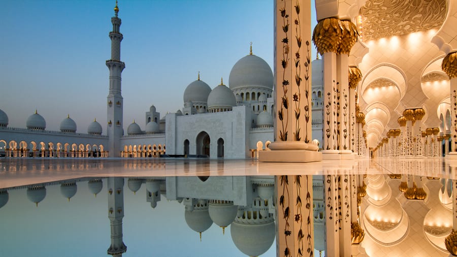 Nu este un moment mai bun de vizitat decât la amurg. Cu minaretele sale albe uimitoare și bazinele în care se reflectă lumina soarelui la apus, locul e magic.