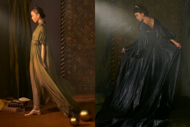 Ținutele vaporoase, detaliile pictate manual, catifeaua și broderia alcătuiesc garderoba de seară grandioasă.