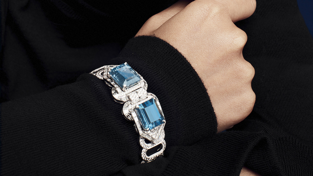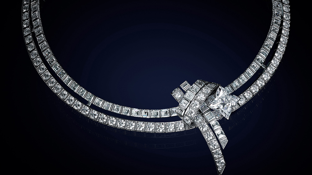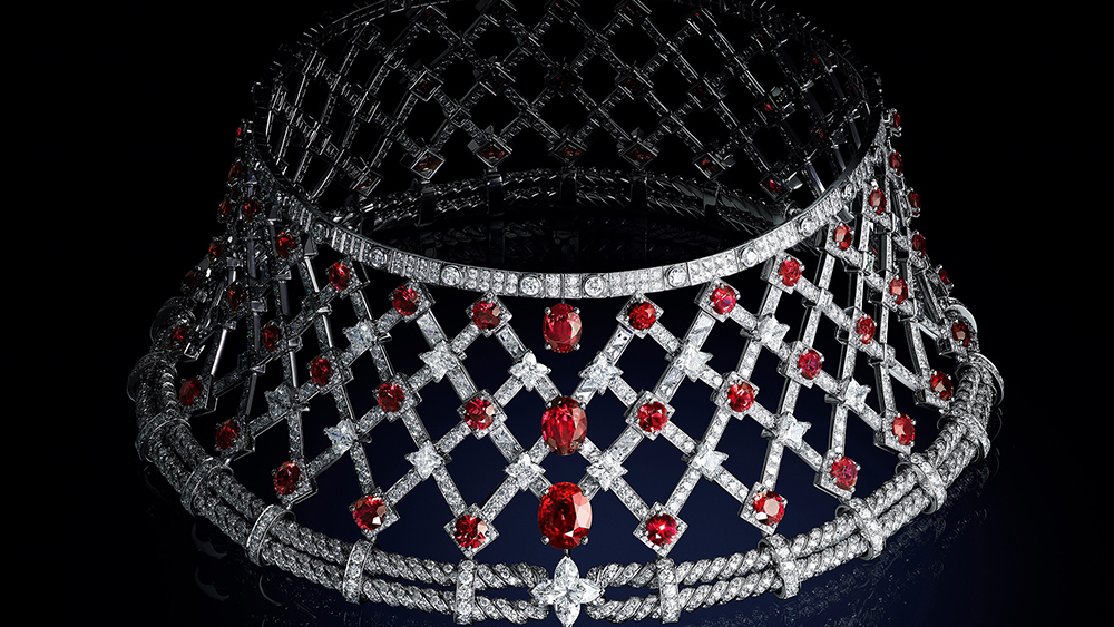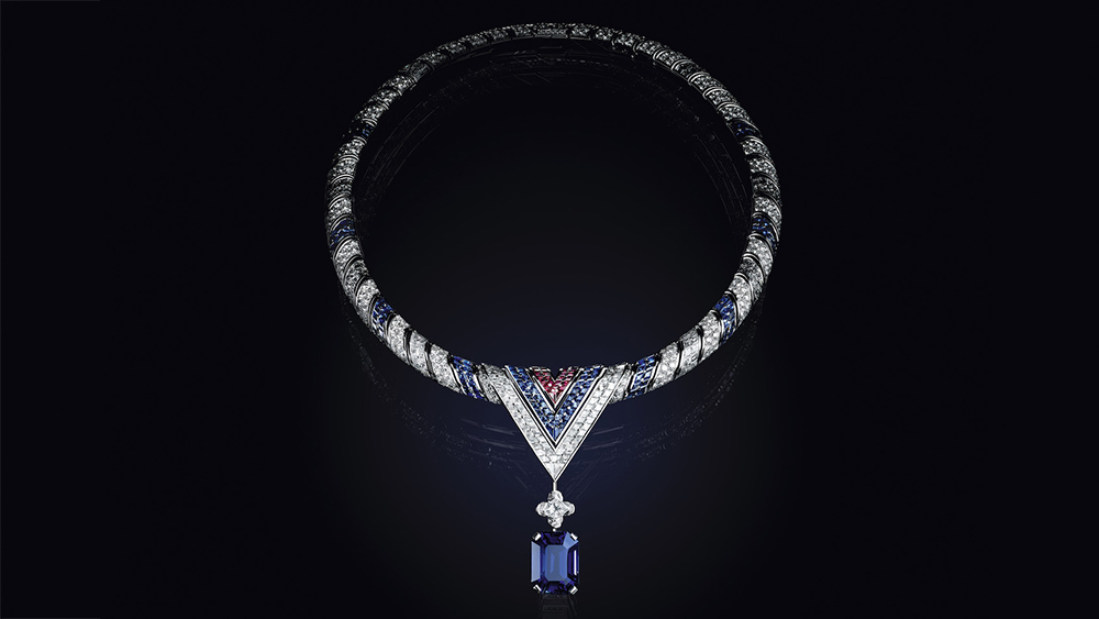 Piesa de rezistență este totuși colierul Le Mythe pe trei rânduri care combină mai multe semnături Louis Vuitton, inclusiv modelul Damier (șah), știfturi și motive inspirate de încuietori. Incrustat cu safire, smaralde și diamante, acesta îl reprezintă pe Louis Vuitton punând bazele casei sale, care este acum un imperiu de 15 miliarde de dolari.