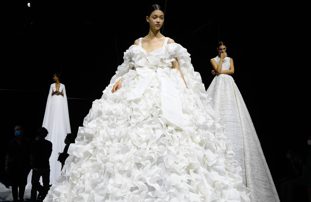 Pierpaolo Piccioli a organizat un spectacol fascinant la studiourile Cinecittà din Roma. Designerul s-a adresat unui grup mic de jurnaliști, o prezentare care a inclus un videoclip și 15 rochii albe uimitor de lungi.