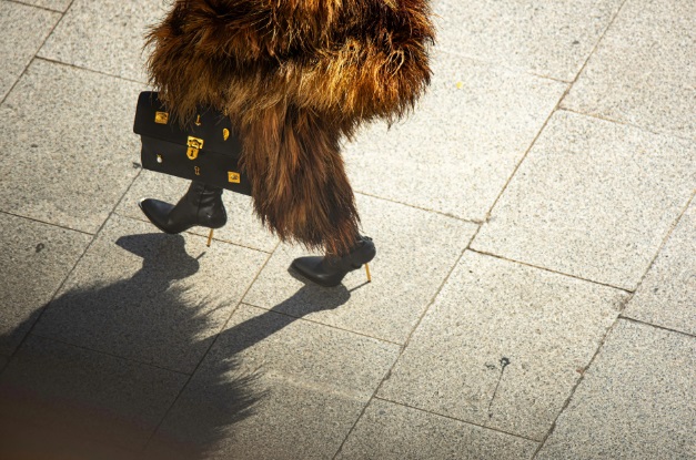 Însă magia Schiaparelli constă în detalii. Pielea roz, neagră și gri este punctată cu piese din alamă lucrate manual, reflectând codurile anatomice dragi Casei: o ureche, un nas, un ochi - fragmente de corp transformate în bijuterii. Pielea maro este împodobită cu ținte aurii, ca și cum ar fi fost tatuată de suprarealism. Pitonul și negrul granulat sunt împodobite cu catarame de alamă, o aluzie la spiritul cowboy al sezonului.