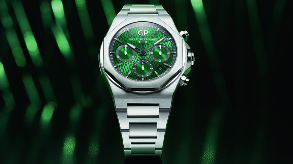 Ceasul combină caracteristici care reprezintă cel mai tare aspect de ceasuri în acest moment. Este un cronograf cu o carcasă și o brățară din oțel inoxidabil și un cadran verde - în acest caz, versiunea verde a unui Aston Martin de curse și, așa cum mașinile verzi ale lui Aston Martin sunt acoperite cu șapte straturi de vopsea, șapte straturi de culoare sunt aplicate pe cadranul acestei ediții speciale.