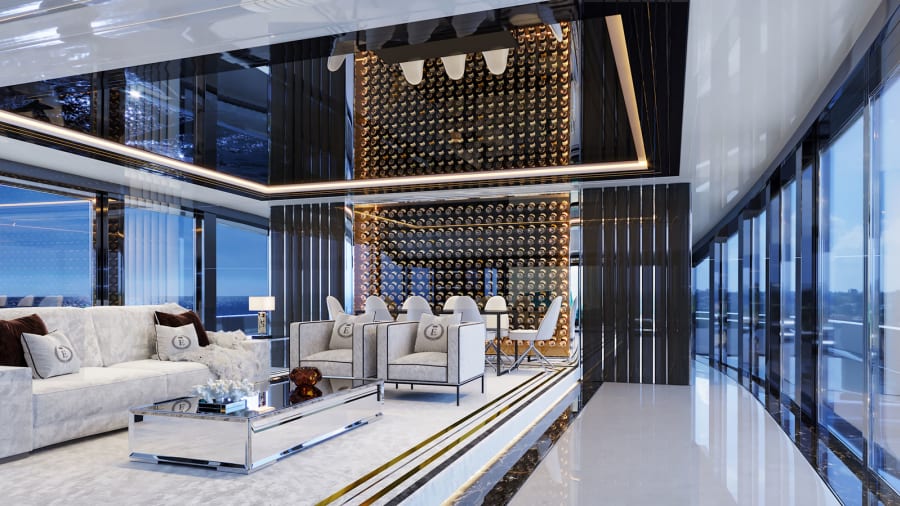 Ambarcațiunea care a trecut testele pe apă ar trebuie să ofere cu 30% mai mult spațiu decât un iaht obișnuit, oferind în același timp stabilitate și siguranță. Iahtul va avea o viteză maximă estimată de 42 de noduri.