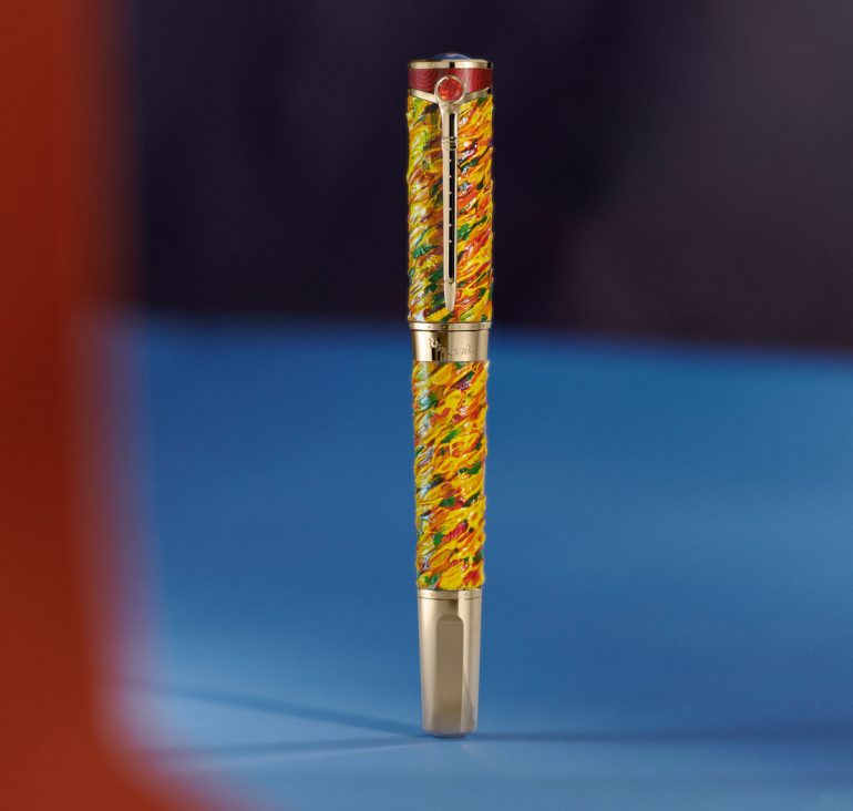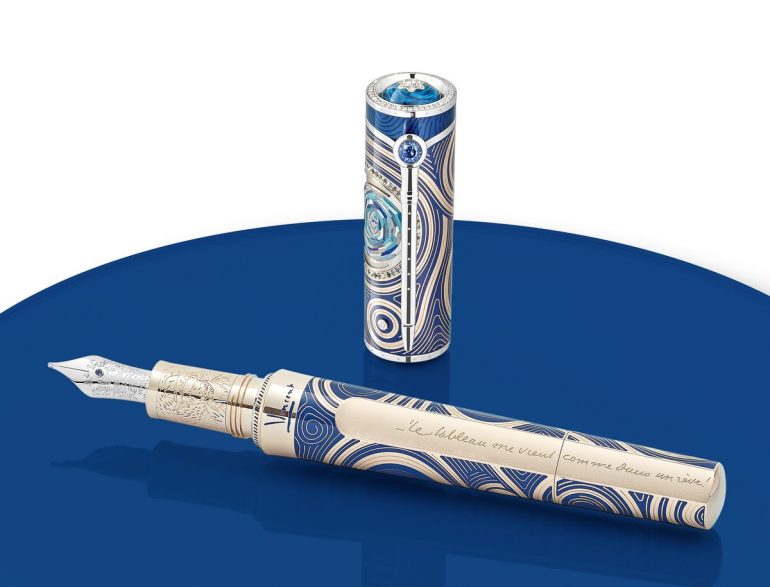 Capacul și butoiul din aur solid Au 750 strălucesc cu diamante tăiate strălucitor și gravuri învolburate care reproduc mișcarea pensulei lui Vincent. Pixul arată frumos cu o multitudine de pietre prețioase precum safire, turmaline Paraiba și diamante tăiate strălucitor în jurul incrustației de marqueterie. Silueta ediției limitate 8 o imită pe cea a unui cuțit japonez de tăiat lemnul.