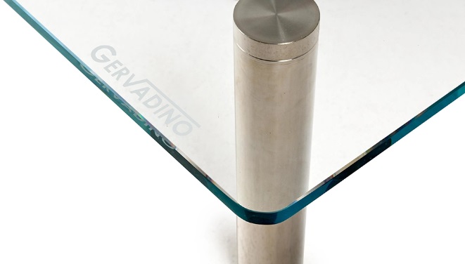 Creată de Alain Gervadino de la Gervadino Design, masa măsoară puțin peste 140 cm/140 cm. Patru picioare din oțel inoxidabil susțin un panou gros de sticlă cu un motor V-8 mândru în mijloc.