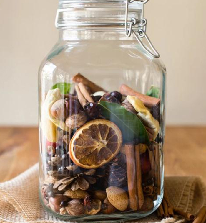 Acesta poate conține felii de citrice, mere, măceșe, conuri, nuci, frunze, baghete scorțișoară și alte condimente.