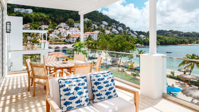 Marigot Bay Resort and Marina oferă numai apartamente, de la unul la trei dormitoare, ceea ce îl face popular printre familiile și cuplurile dornice să scape după luni de blocare. Pachetul lor de cazare și mic dejun „stați șapte nopți, plătiți cinci” are tarife începând de la 354 de dolari pe noapte pentru o suită junior.