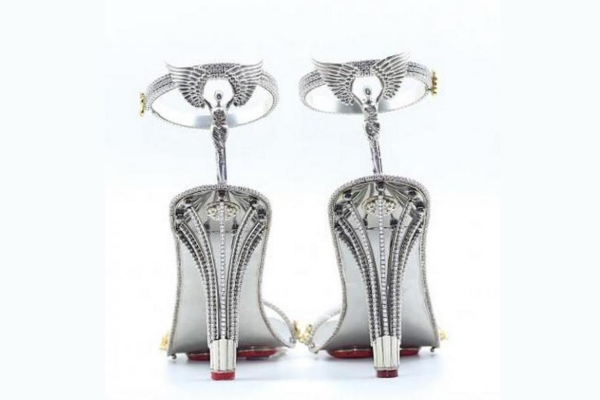 Pantofii Angel Wing sunt împodobiți cu 2.000 de diamante de 16 carate și au curelușe cu flori de aur.