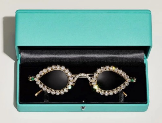 Realizată din aur de 18k, perechea elegantă, în formă de migdale, este decorată cu 61 de diamante rotunde de peste 25 de carate în total, precum și două smaralde tăiate smarald. Are lentile de culoare neagră și este modelul potrivit de bling pe placul unui superstar!