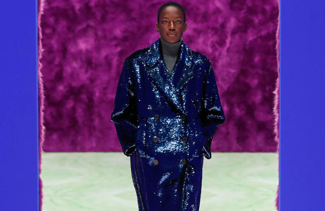 Modelele au defilat într-o cameră întunecată, cu lumini intermitente stroboscopice care imitau un club.