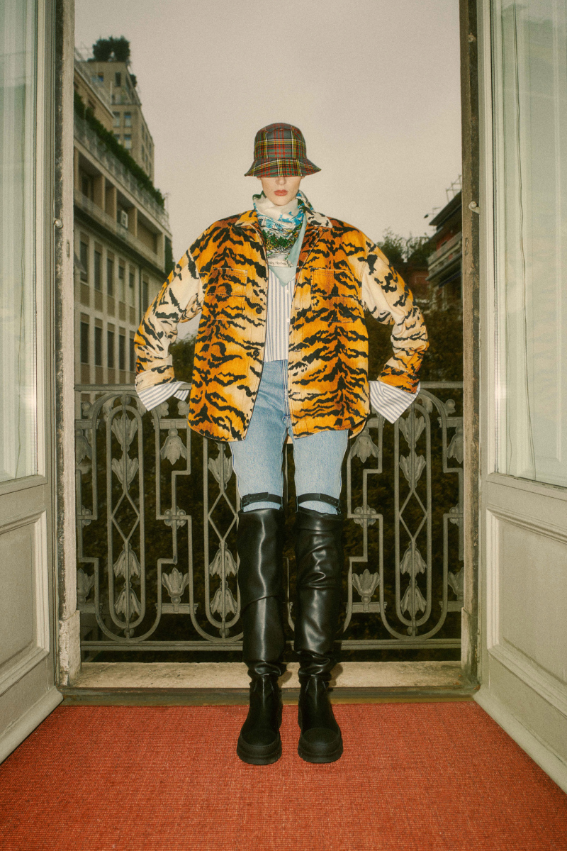 Motivele argyle revizuite și-au găsit locul lângă un model cu animal print, pe un impermeabil și pe un set tricotat. Pielea ecologică a fost introdusă cu o cămașă neagră combinată cu pantaloni evazați pentru o senzație ușoară a anilor '80 și, de asemenea, folosită pentru o mini-rochie cu mâneci bufante.