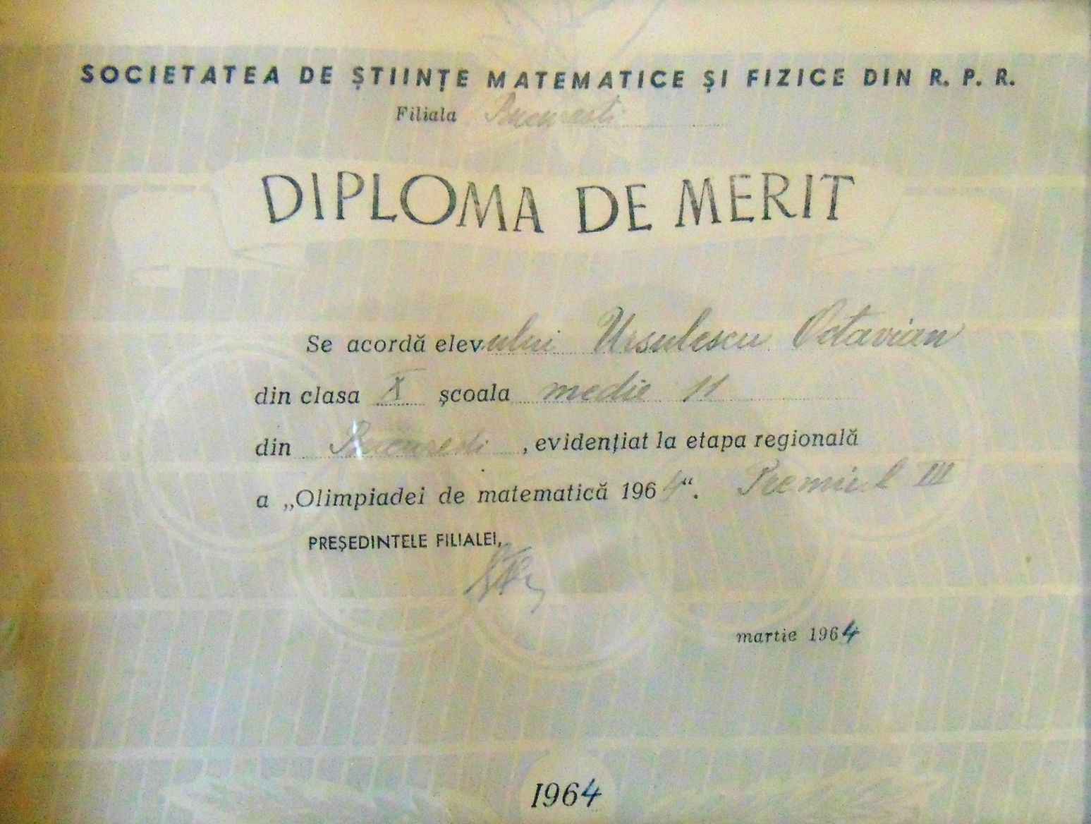 Iată însă că pandemia se prelungește și cum prin grădină nu mai sunt așa multe de făcut (deja s-au copt primii fragi!), Tavi Ursulescu și-a găsit altă ocupație care-i pune mintea și cunoștințele la încercare. După cum se știe, pe vremea liceului a fost unul din cei mai buni matematicieni și fizicieni din țară, numeroasele distincții cucerite de el la nivel național culminînd cu premiul II la Olimpiada republicană de matematică, în clasa a IX-a, înmînat lui de însuși celebrul om de știință, academicianul Grigore Moisil. Profitînd acum de șederea în casă, Tavi Ursulescu și-a făcut ordine prin hîrtii și a descoperit subiectele care i-au adus acest prestigios premiu.