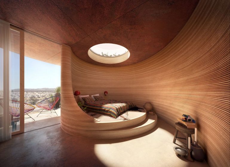 Liz Lambert, fondatorul brandului hotelier boem El Cosmico de la Marfa, a colaborat cu ICON și Bjarke Ingels Group (BIG) pentru a oferi un refugiu imprimat 3D, cu o piscină infinită uriașă, poduri și corturi de safari chiar în mijlocul deșertului.