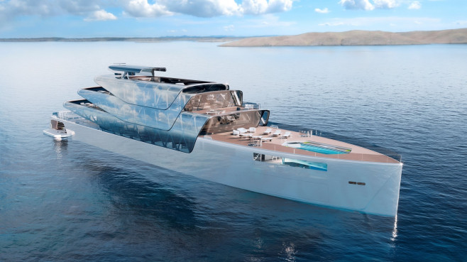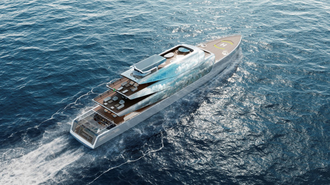 Vasul uriaș va avea „aripi” din sticlă proiectate să oglindească mediul înconjurător pentru a-i permite iahtului să se contopească cu peisajul.