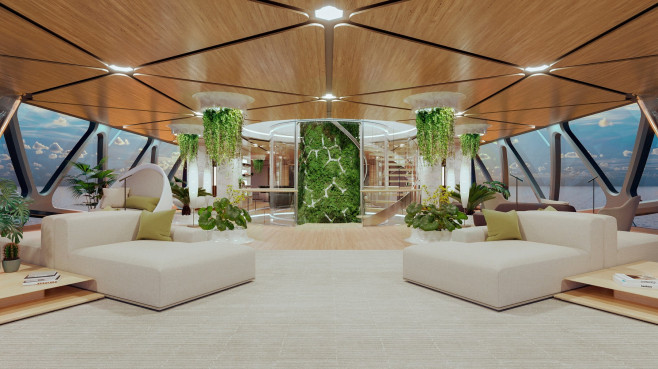 Piesa de rezistență din interiorul iahtului este „Arborele vieții”, care se va extinde pe patru nivele, conectat fiind printr-o scară în spirală, și va reprezenta nucleul unei grădini hidroponice ce va oferi alimente proaspete și va ajuta la purificarea aerului.