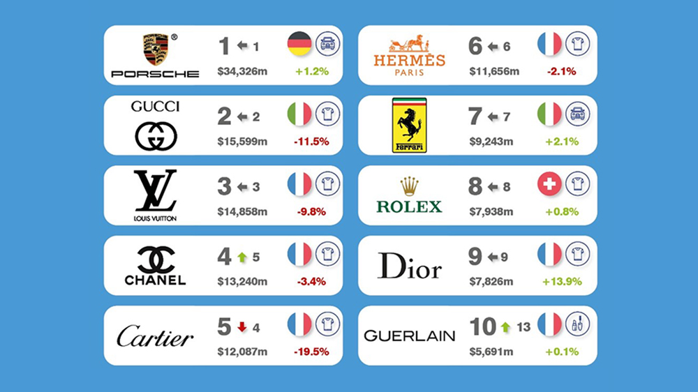 În mod similar, Ferrari a crescut cu 2% până la 9,2 miliarde de dolari, în timp ce Rolex a crescut cu 0,8% până la 7,9 milioane de dolari. Întâmplător, cei doi titani de lux au fost, de asemenea, numiți cele mai de încredere mărci din lume la începutul acestui an.
