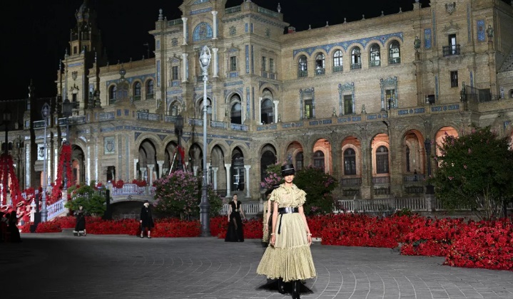 Plaza de Espana din Sevilla a vibrat joi, 16 iunie. A fost prima dată când brandul și-a prezentat o colecție în Spania și, de asemenea, prima pentru o etichetă internațională de lux.