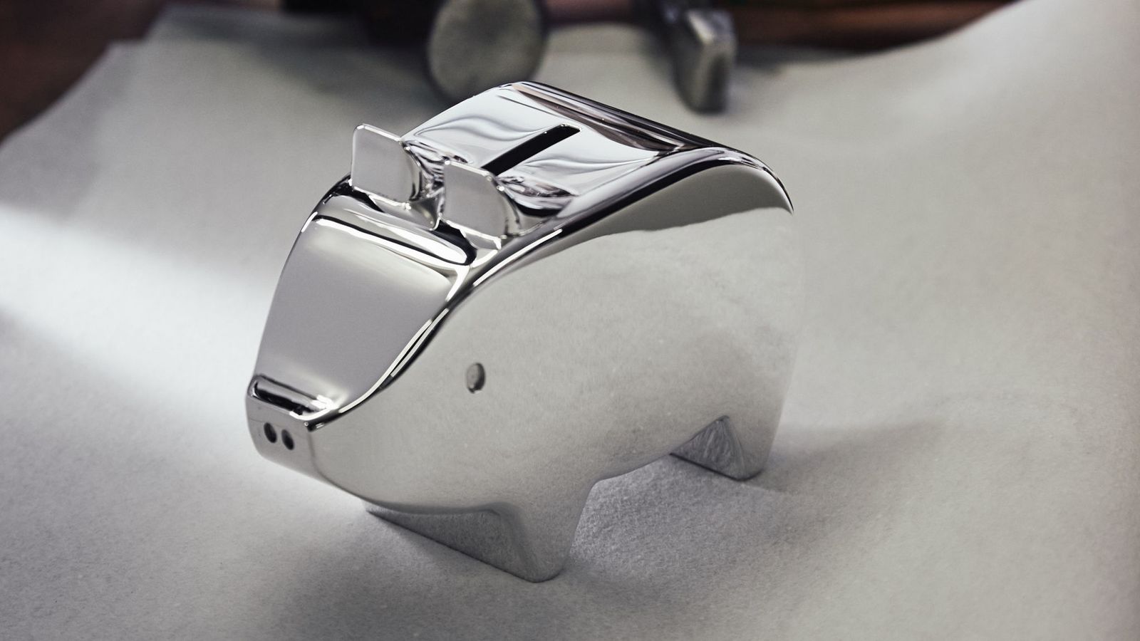 Este prima puşculiţă creată de-a lungul istoriei de 1.100 ani a Monetăriei Regale Britanice şi face parte dintr-o nouă gamă de cadouri şi bijuterii.