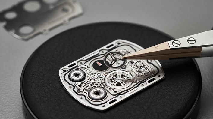 De sus în jos, fața și fondul carcasei măsoară doar 1,75 mm grosime atunci când sunt puse împreună. Asta îl face cu 0,05 mm mai subțire – sau doar cu trei procente mai subțire – decât Octo Finissimo Ultra de la Bulgari, care a fost lansat la începutul acestei primăveri.