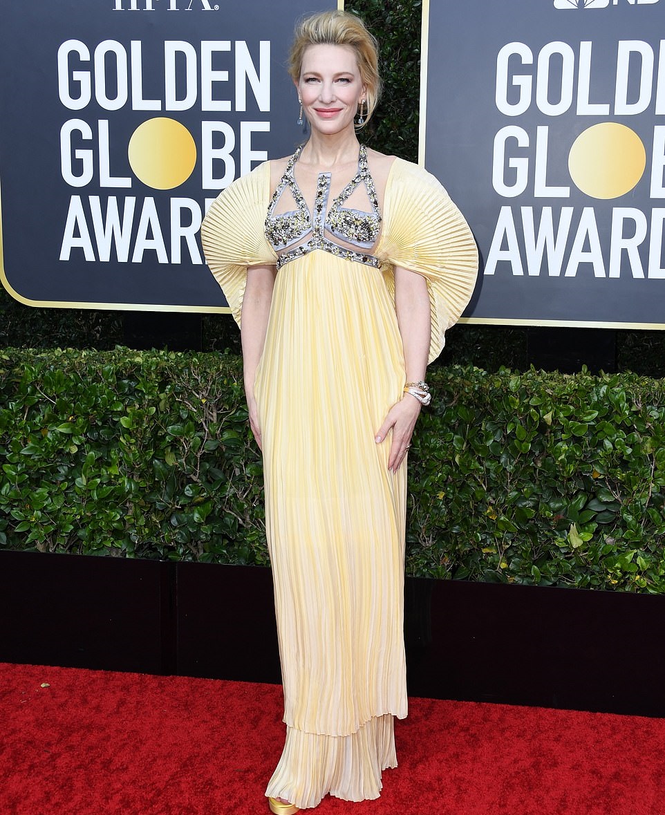 Blanchett a ales o rochie galbenă creată de Mary Kathantzou, designer preferat şi de Comer.