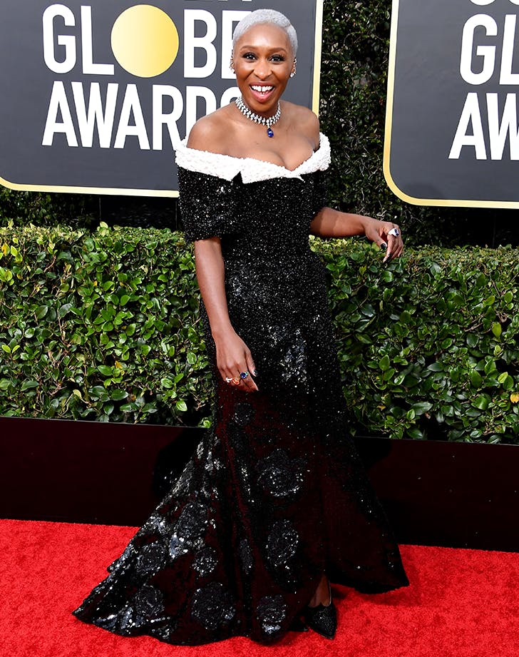 Actriţa Cynthia Erivo a purtat un colier Bulgari din platină cu diamante şi safire de 56,65 de carate şi inele asortate, astfel că bijuteriile purtate au o valoare de peste 3 milioane de dolari, potrivit The Hollywood Reporter.