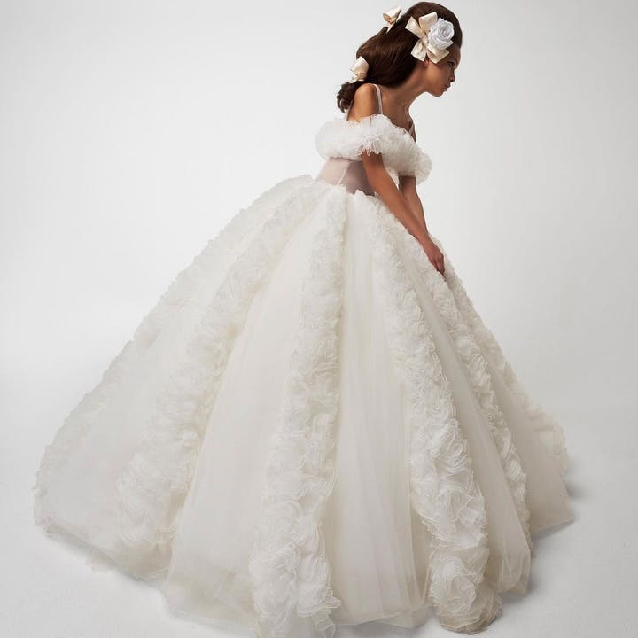 Tulle, petale de flori și culori pastelate dau o nouă viață rochiilor din colecția Giambattista Valli Haute Couture primăvară/vară 2021 cu o aromă idealistă pe care numai creatorul de modă și-o putea imagina.