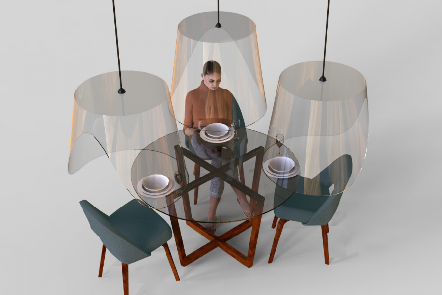 „Mă îngrijora situaţia restaurantelor. Prin urmare, am gândit un dispozitiv care să le permită clienţilor să socializeze şi să se simtă bine adunaţi în jurul unei mese, fără niciun risc pentru sănătatea lor”, spune designerul Christophe Gernigon.