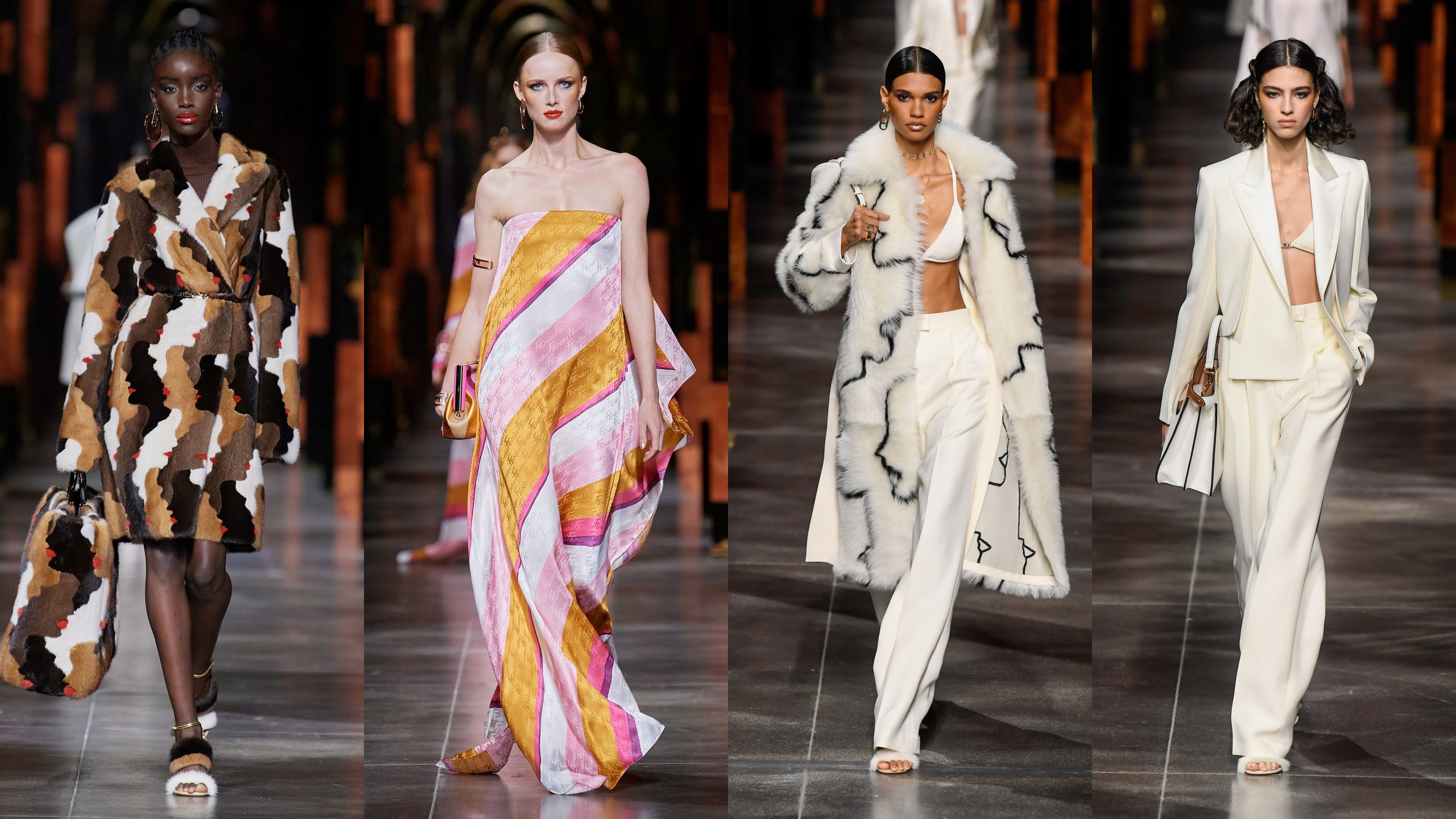 Siluetele fluide ale casei Fendi au navigat pe pistă, folosind amprente și logo-uri din arhivele istorice ale casei de modă. La Brunello Cucinelli, tricotajele au primit o actualizare glam cu detalii metalice și paiete, în timp ce Jil Sander a experimentat cu piese țesute îndrăznețe și nuanțe pastelate care s-au abătut de la paleta lor de culori neutre.