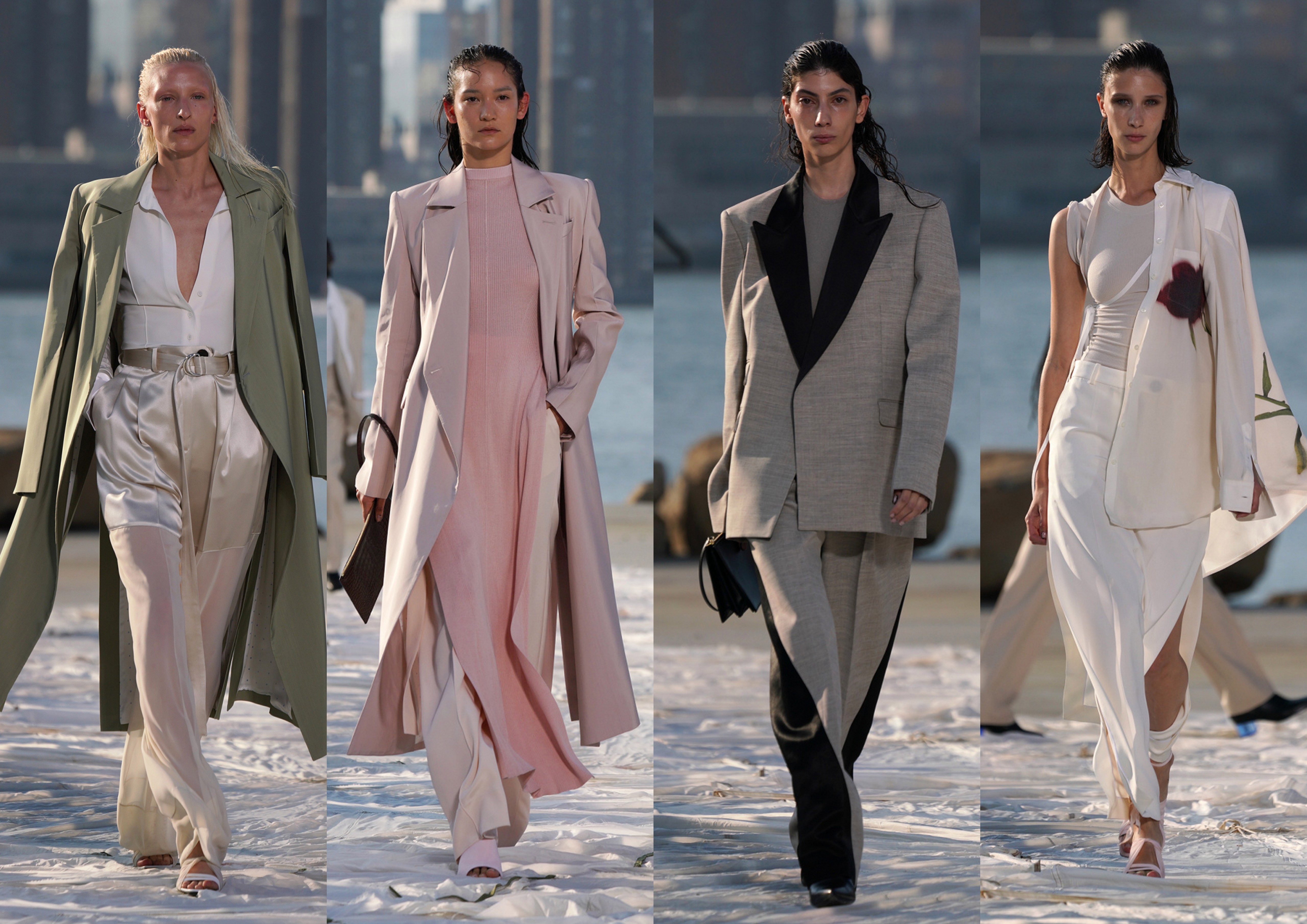 „Mi-am dat seama că există putere în blândețe”, a spus designerul despre colecția sa, care include rochii fluide din mătase și in, pantaloni inspirați de stilurile tradiționale vietnameze ao dai, fuste plisate mai ușoare pentru costumele sale din patru piese și cămăși glisante tratate aproape ca accesorii.