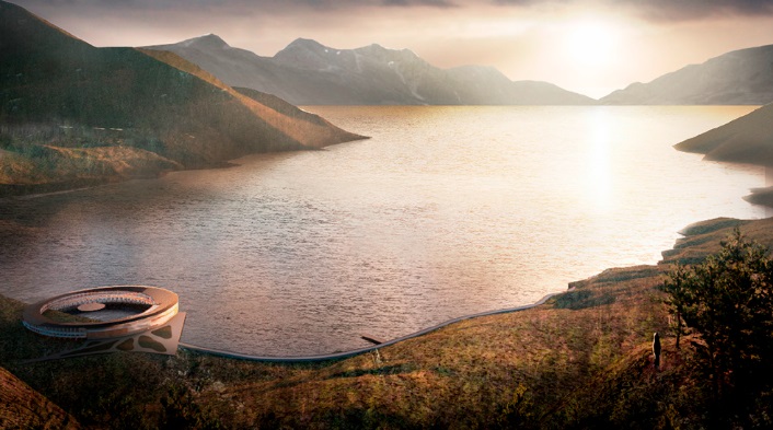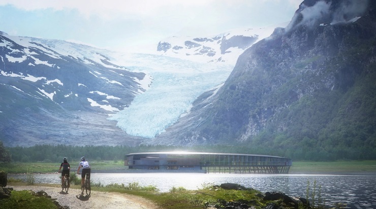 Inspirat de o cabană de pescar de coastă, cunoscută sub numele de rorbu, hotelul cu 94 de camere va fi suspendat cu grijă deasupra fiordului Holandsfjorden, prin intermediul unor stâlpi care reduc la minimum impactul asupra mediului glaciar din jur.