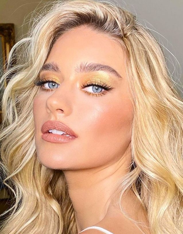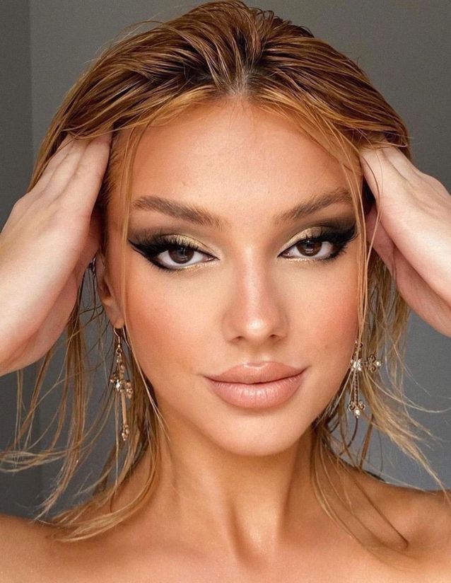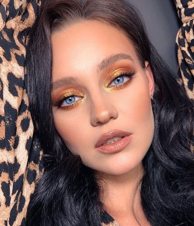 Pe Instagram, influencerii au adoptat deja ochii fumurii aurii. Pentru un efect mai glamour, optează pentru un ten nude cu nuanțe de roz. Numai auriul de pe pleoape este foarte vizibil.