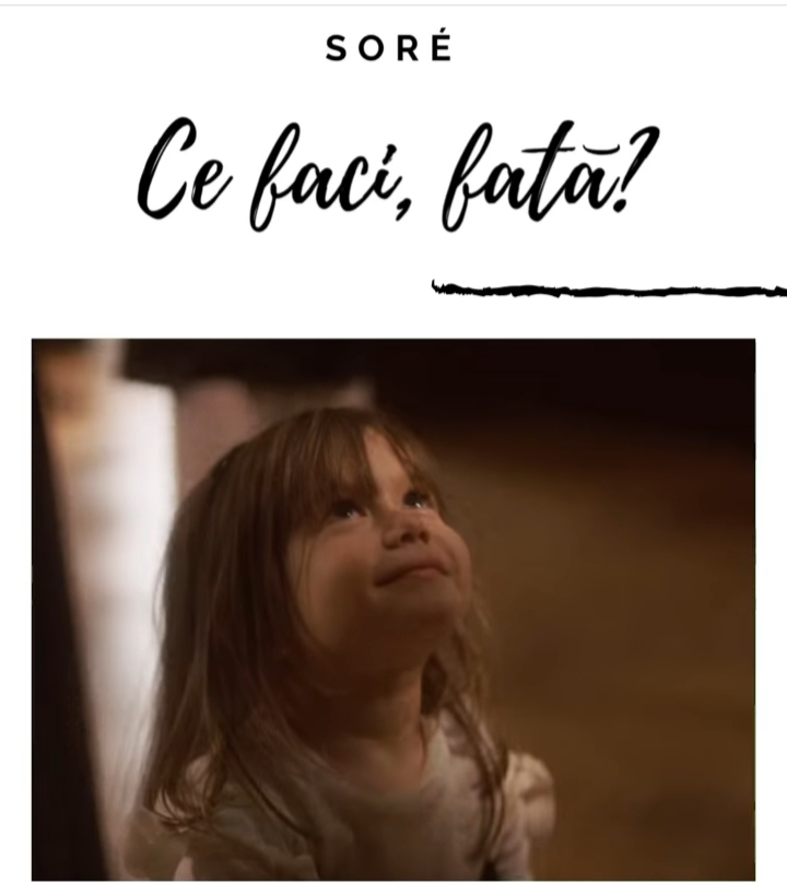 Solista a invitat-o şi pe Erin, fetiţa ei de aproape 4 ani, să joace în videoc clip rolul ei în copilarie, iar alături de ea, colegele ei de grădiniţă să le interpreteze pe prietenele ei atunci când erau mici. Interacţiunea dintre Sore şi Erin aduce un plus de sensibilitate poveştii video transmise prin piesa „Ce faci, fată?” şi face ca mesajul ei să fie puternic şi să sublinieze că încrederea în forţele proprii este o lecţie care se predă încă din copilărie. „M-am gândit la fata mea şi la toate de-ce-urile pe care mi le adresează, pornind de la lucruri concrete până la lucruri subiective, profunde. Observ pe zi ce trece că lucrurile pe care i le repet legate de încredere, vise şi valori personale devin din ce în ce mai împământenite în personalitatea ei, aşa că eu cred că un adult puternic şi bine crescut se conturează, evident, din copilărie. Erin şi-a dorit să filmeze, e deja măricică şi înclinaţia ei spre artă este evidentă prin activităţiile zilnice. Eu cred că femeile sunt fetiţe în interiorul lor, mă regăsesc atât de mult în Erin încât îmi imaginez că fiecare dintre noi are un “eu” copil în el şi se refugiază acolo atunci când îi permite timpul”, explică Sore.