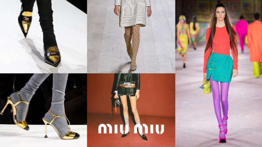 Anul acesta, așteptați-vă să vedeți șosete combinate cu pantofi cu toc înalt și sandale. Miu Miu și Prada oferă o combinație de șosete sportive pentru bărbați contrastate cu pantofi grațioși. Simone Rocha, cunoscută pentru feminitatea ei subversivă, s-a străduit și ea pentru un contrast puternic în cea mai recentă colecție: șosetele cu perle sunt asortate cu platforme rezistente.