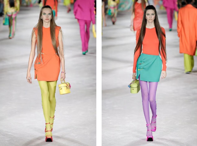 De asemenea, colanții au furat spectacolul în diverse colecții în timpul Săptămânii Modei de la Paris. Acest lucru nu este nimic nou, desigur, deoarece colanții imprimați cu logo-uri (Gucci, Chanel și Fendi) au crescut în popularitate în urmă cu câțiva ani. În acest sezon, însă, casa de modă italiană Versace a readus colanții colorați neon în colecția lor de primăvară/vară 2022, împodobiți cu nasturi atrăgători pe laterale.