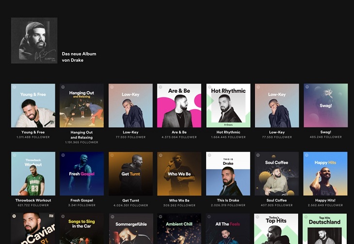 Spotify și-a dezvăluit cele mai căutate melodii, albume și artiști din ultimii zece ani, Drake fiind cel mai difuzat artist din anii 2010. Vedeta canadiană a acumulat peste 28 de miliarde de difuzări, cu cea mai populară melodie a sa, One Dance, descărcată de 1,7 miliarde de ori singură.