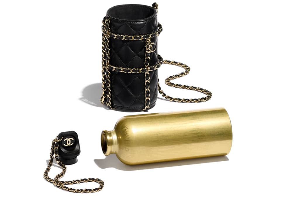 Setea de modă este imposibil de stins, iar Chanel inovează din nou acest segment. Termosul în tonuri aurii este ușor de transportat, deoarece marca s-a gândit să-i facă și o gentuță din piele matlasată cu lanț.