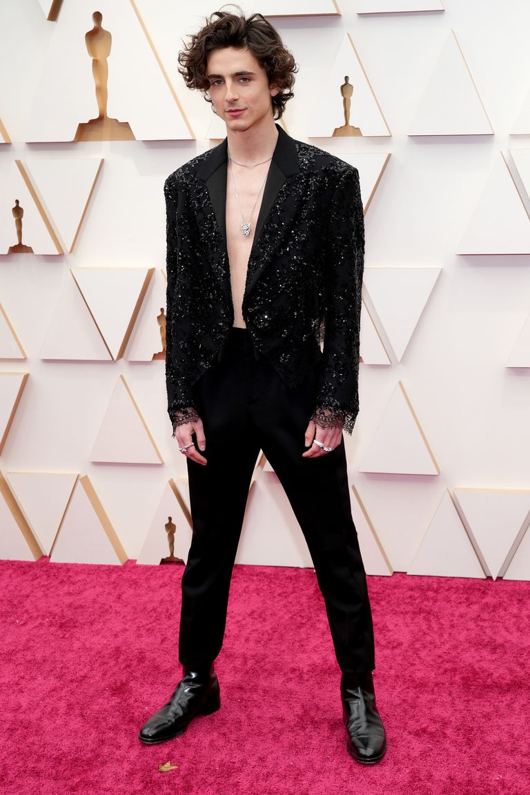 De obicei, băieții tind să fie mai tradiționali la Premiile Academiei. Chalamet, însă, nu se teme să-și stabilească propriul cod vestimentar. Când actorul a apărut la primele sale premii Oscar în 2018, când a fost nominalizat pentru „Call Me By Your Name”, el a păstrat lucrurile mai tradiționale cu un smoking, ce-i drept, de culoarea fildeșului. Când s-a întors la Oscarurile din 2020, a încălcat complet codul vestimentar purtând un trening. Un trening impecabil croit și incredibil de șic de la Prada, dar totuși o jachetă cu fermoar.