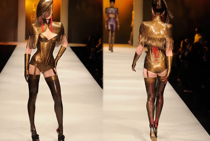 În timp ce mănușile de operă au indicat o poziție socială mai înaltă și uneori morală, sensul lor poate și a fost subminat pentru a indica o anumită rasă de senzualitate. Marca de latex Couture Atsuko Kudo știe ceva sau două despre erotic, deoarece studioul este specializat în materialul elastic. Redarea piesei de altfel elegantă într-o țesătură atât de hedonistă adaugă instantaneu sex-appeal, în timp ce aducem înapoi la estetica atent îngrijită a unui timp mai primitor și mai potrivit.