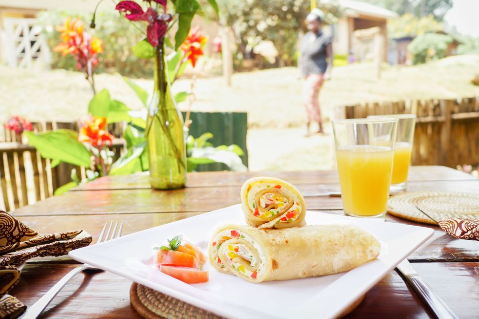Bucătăria din Uganda este cunoscută pentru prospețimea sa și caracterizată prin influențele sale arabe și indiene. Preparatul de bază este matoke, un fel de supă cu banane. Rolex” este unul dintre mâncărurile mai cunoscute din Uganda, o clătită care conține omletă și legume, servită de obicei la prânz sau ca gustare.