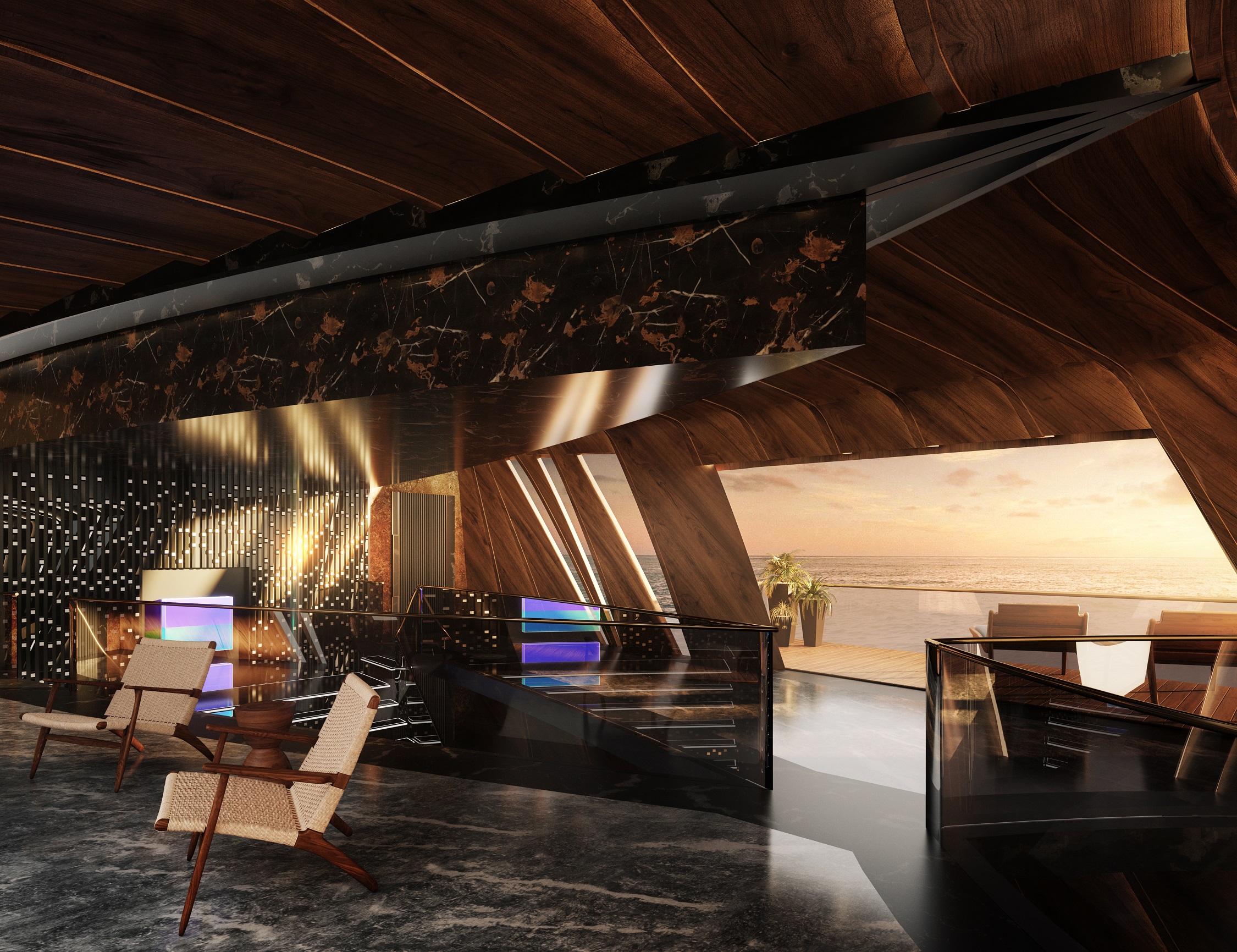 Pentru oaspeți, nava este prevăzută cu cinci cabine spațioase care găzduiesc zece oaspeți. Și exteriorul merită o mențiune specială pentru că este atât de unic și atrăgător, etalând o formă unică și o piscină infinită uriașă.