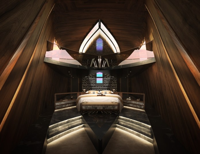 Yachtul de lux aduce două niveluri de facilități uluitoare și interioare de vis. Cu siguranță este foarte prietenos cu Hollywood-ul, potrivit pentru premiera unui blockbuster. De asemenea, filmele inspiră puternic designul interior pentru a oferi un aspect elegant și sofisticat reperat în mod incontestabil în dormitorul principal organizat pe două niveluri și un balcon pliabil.