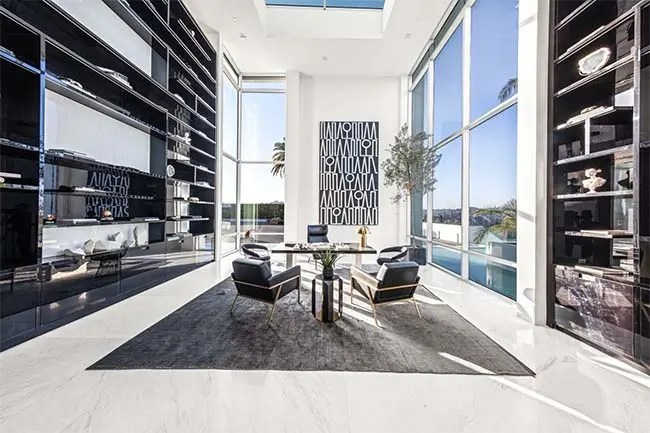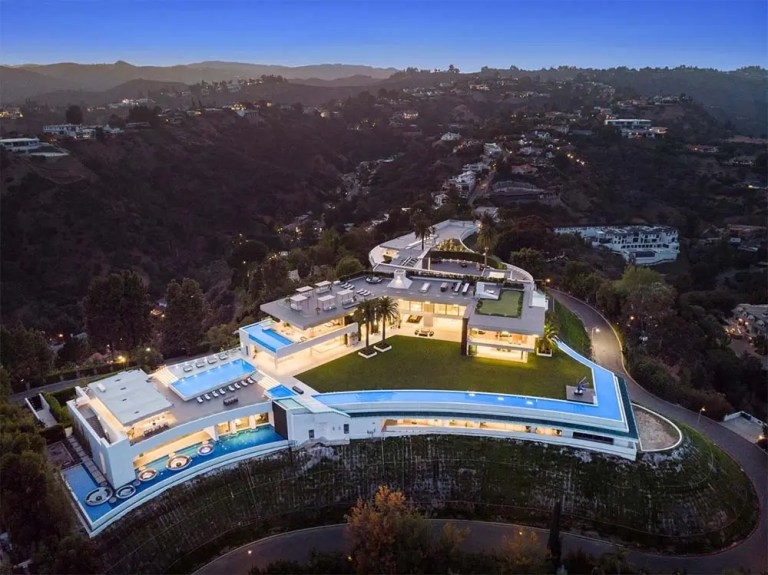 Concepută de arhitectul Paul McClean, uimitoarea proprietate, care se întinde pe o suprafață de 3,8 acri, oferă vederi de 360 de grade asupra Oceanului Pacific, centrul orașului Los Angeles și munții înzăpeziți San Gabriel.