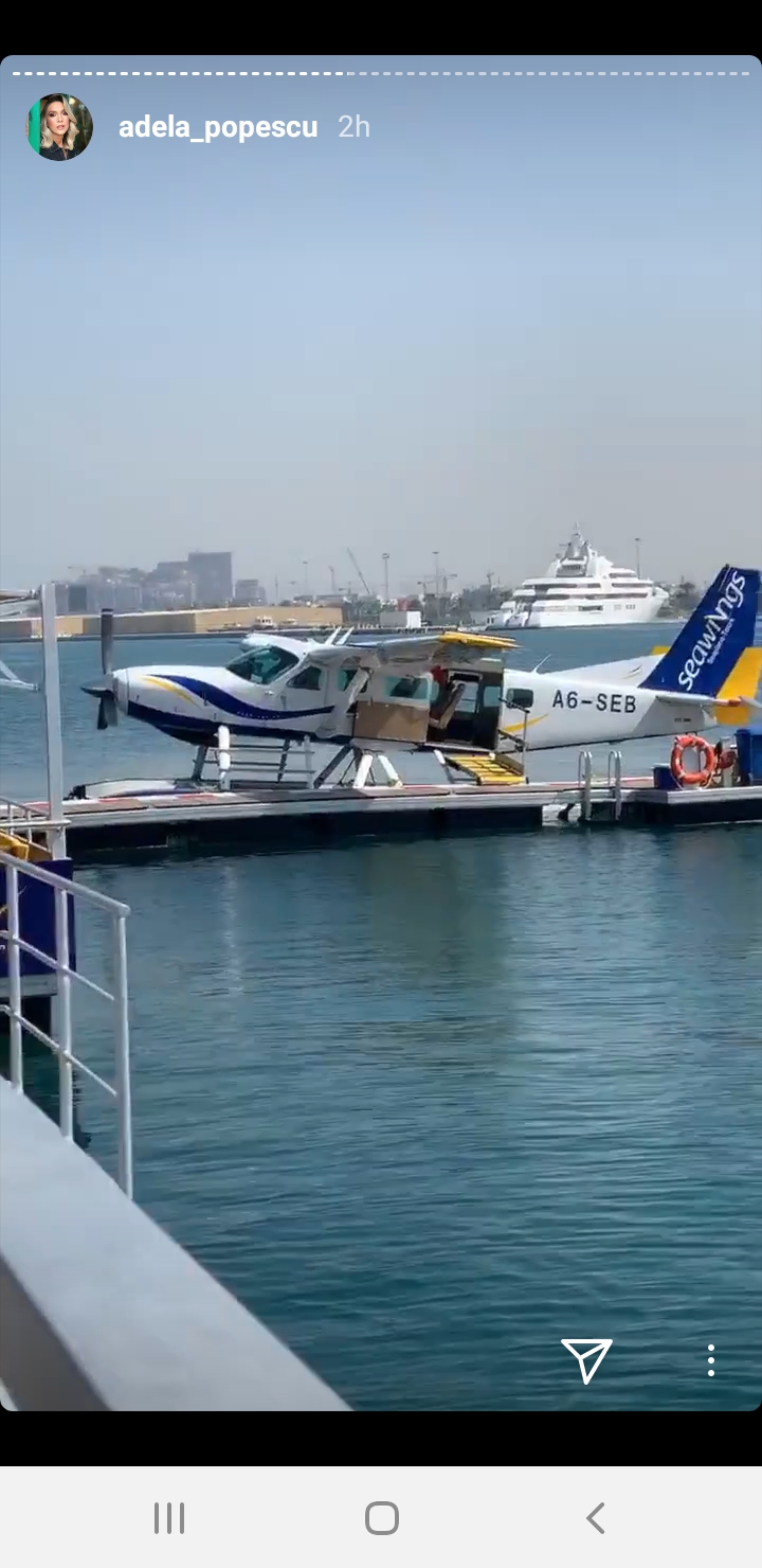 "Dragilor, după cum bine vedeți în spatele meu, nu sunt acasă în București. :-) Am plecat aseară spre Dubai într-o mică escapadă romantică. Că a debuta cu ceva lacrimi, e altceva. Dar, nahm știți cum e, prima dată doar noi fără copii, dor, un pahar de vin, plus un zbor cu avionul. Dar când ne-am trezit de dimineață, fără nicio trezire peste noapte, am zis că e fain tare în vacanță :-). Și că să fim nebunatici până la capăt, soțul a aranjat un zbor deasupra Dubaiului cu un avion de mici dimensiuni, Superb, ce să zic. Acum suntem bine, mergem să bem un prose", a scris Adela Popescu pe rețelele de socializare unde le-a mai povestit fanilor că se vor întoarce duminică înapoi.